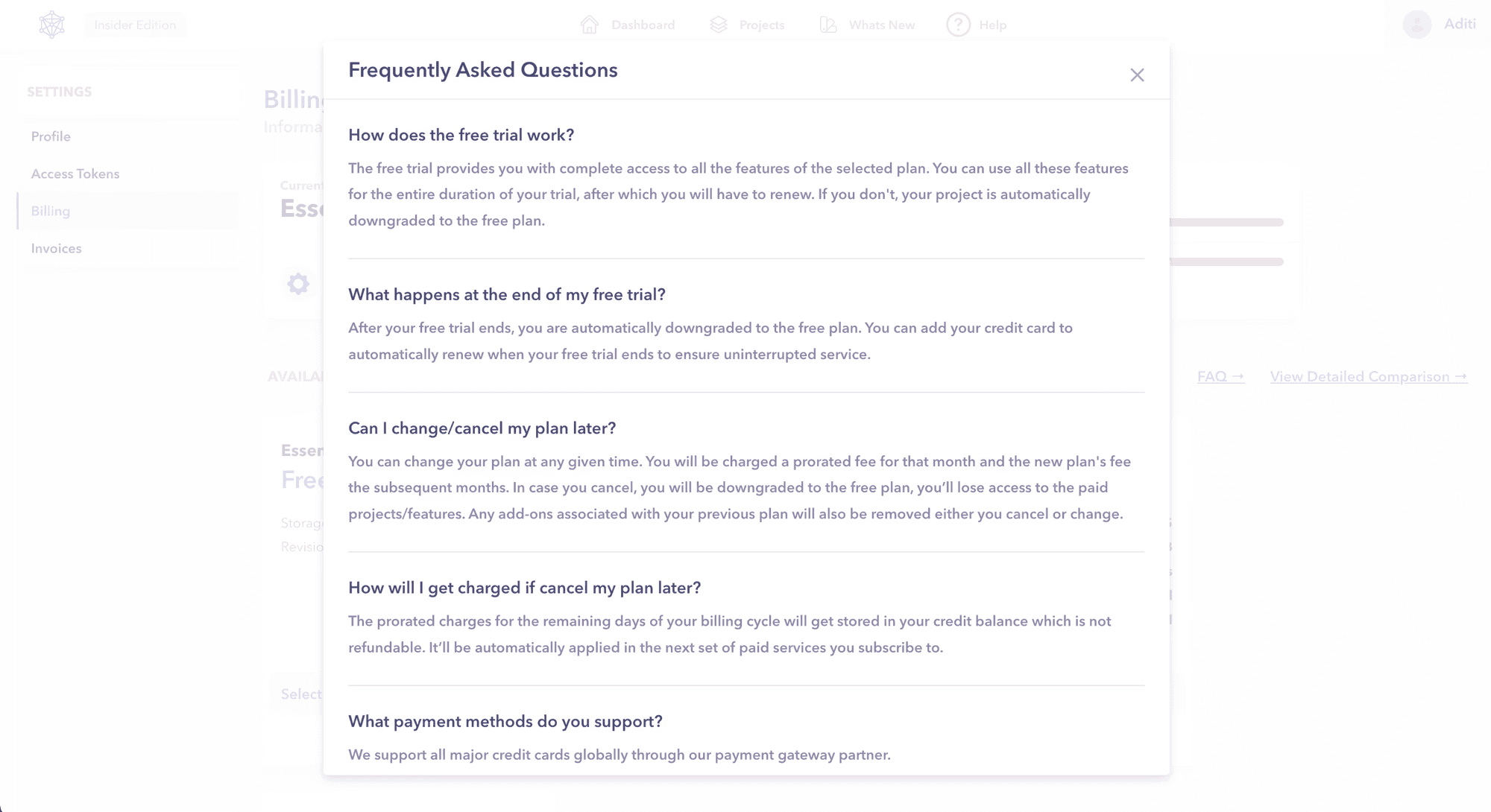 There was a need to define the pricing strategy for the paid plans along with a holistic experience for users to select/modify/cancel plans in a self-serve manner with complete customer support.